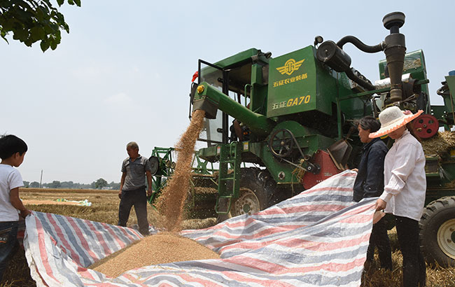 初夏时节,河南、安徽、山东等小麦主产区延绵无边的小麦翻着金黄的麦浪,一派丰收在望的喜人景象。记者在河南地区一处麦田看到,一台台五征GA70小麦收获机正在作业,百米长的麦地一会就是一个来回,麦田主人在地头拿着篷布等待卸粮,看着在自己地里作业的五征小麦收获机纷纷竖起了大拇指。机主宋小广告诉记者,他农闲的时候一直搞运输,最早用的就是五征农用车,过硬的产品质量给他留下了深刻印象。今年想买个小麦收获机跨区作业,看见卖场里有五征的产品,毫不犹豫地买了下来。当记者问到这个车作业情况时,宋小广说:“真是买对了,油箱大,一天基本不用停下来加油,一天8小时在车上,能收150亩左右。”