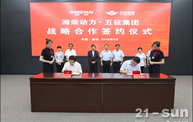 6月4日,潍柴动力与五征集团在潍坊签署战略合作协议,共同推进农业装备的转型升级、创新发展。