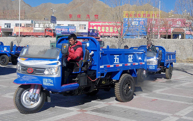 就这样,格桑购买了第一台五征车——五征金玉虎三轮车,在聂拉木县民政局拉点杂物,闲时借给亲戚搞点货运出租。买了第一辆五征车之后,格桑切切实实地感受到了五征车的优势,对五征车颇有些相逢恨晚的味道,从此一发不可收拾。这不,接下来格桑又接连购买了神州虎盘半、奥翔1600盘半两辆三轮车,前几天又买了一辆奥翔1600新三人座椅车型,与五征结下了不解之缘。