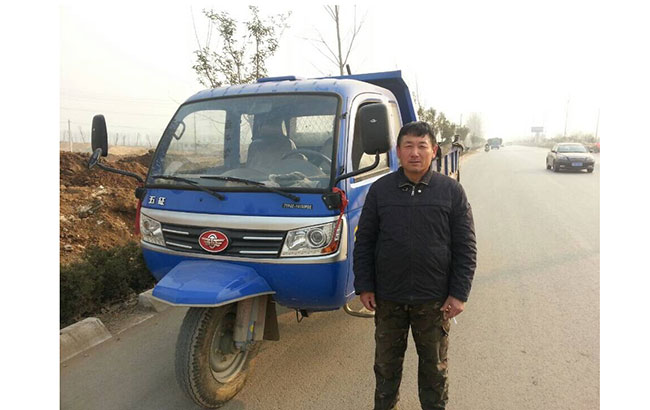 时间一天天过去,在犟牛师傅买车第三个月的时候,那也是一个寒冷的冬天,犟牛赶完集后已经是下午4点多了,突然间车不走了当时他也没觉是回事,因为他会修车他自己下来检查了一下发现是后桥原因,这可难坏了我们的犟牛师傅,因为他没有后桥件啊,他抱着试试的想法拨通了兆斌公司的电话,公司接到电话后当时也为难了因为这个后桥件坏的很少公司没有备货,但是公司考虑到这么冷的天,不能让用户一直呆在路上啊,公司马上组织维修人员拆新车拿着零件马上到了犟牛师傅坏车的地方为他换上新件,换完后天已经很黑了,看着深深的暮色再加上寒冷的天我们的犟牛师傅感动了说真是没有想到啊,以前我的车坏了打电话他们说自己处理但这次你们竟然赶过来了这么冷的天你们五征的服务真不是说的接着他竖起了自己的大拇哥,非要和我们的维修人员吃饭一直说五征三轮车服务真是好啊!