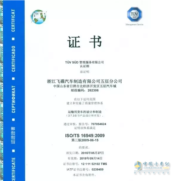 中国卡车网2016年6月21日获悉,从德国TUV认证机构传来好消息,五征集团顺利通过TS16949质量管理体系认证,成为中国轻卡行业首家获得认证的民营企业。它标志着奥驰汽车的质量保证体系已经与国际接轨,品牌价值及国际影响力显著提升。