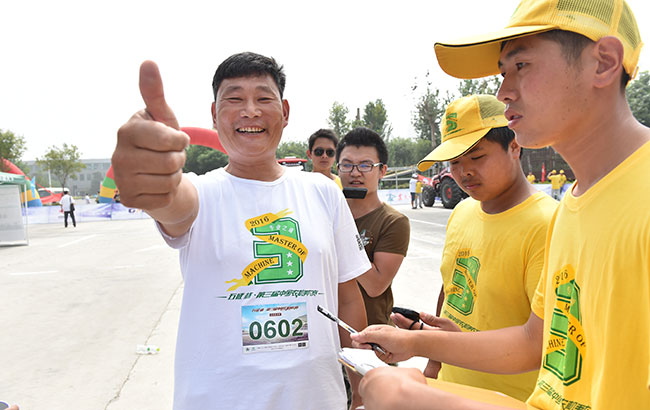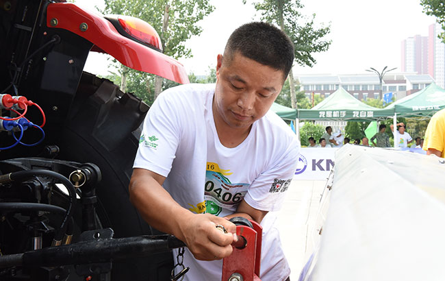 在大赛现场我们还找到了去年全国农机修理工竞赛全国总冠军陈宝,他来自新泰的一家合作社,不仅会修农机,这开农机也很有一手,前两个环节都已较好的成绩晋级,但由于缺乏比赛经验在第三轮农机垂钓环节几个小失误让他与决赛失之交臂。他告诉记者,老早就关注这个大赛了,去年由于大赛时间与维修工竞赛时间上的冲突,没能来参加,今年是早早报名,就是想来跟全省乃至全国的机手朋友们交流下技术,互相学习下。