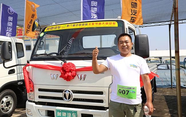张交伟,一名开了8年的货车司机,去年购买了一台奥驰X2运送粮食,七点的时候就开着自己的车来到了比赛场地,领到了1号。他说道:“我是五莲人,自己家乡的活动,自己家乡的品牌,支持这样的活动,希望下次在参加这样的活动。”