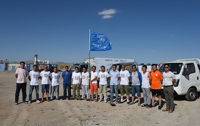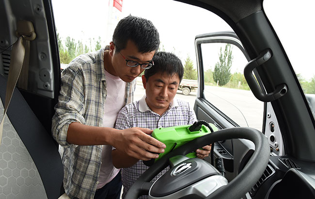 这位正拿着车辆故障检测仪的小伙是本次三高试验团队中最年轻的成员张甲新。2012年大学毕业后加盟五征,就职于汽车试验检测室。经过四年努力,他掌握了汽车产品所有试验项目的操作方法,成为了试验检测室的骨干力量。本次跟队出征他每天都是最后一个休息的,因为车队完成了一天的行程,他需要对每辆车进行故障检测。