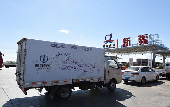 奥驰全新车型“三高”试验车队从五征总部出发,18名车队成员用6天时间,横跨了山东、河南、陕西、甘肃4个省,行程3600多公里顺利抵达有“火洲”新疆吐鲁番,进行第一阶段的高温试验。