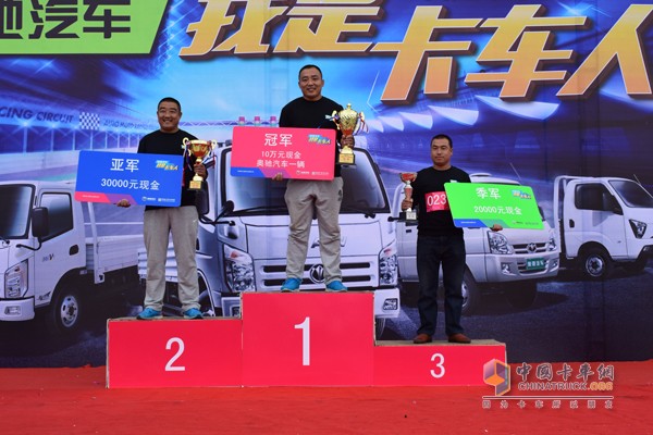 随着比赛深入,最好成绩一次次被刷新,来自山东莒县的陈为秋跑出了2’51”00的好成绩,并一度保持了大半个赛程。就在大家认定冠军非他莫属时,陈为秋的弟弟陈为强后来居上,跑出了2’27”03的最好成绩,这个成绩一直保持到比赛结束也没人能超过。最终兄弟俩分别获得冠亚军,双双获得大奖!陈为强告诉记者:“东部大区赛,我哥就是冠军,但我没有取得好名次。平时我们兄弟两个开的都是奥驰汽车,我的驾驶技术不比我哥差。所以我就暗自决心赶上我哥,没想到这次我得了冠军!”打虎亲兄弟,上阵父子兵。陈为秋兄弟可谓龙虎之师,有选手开玩笑说,他们是组团拿大奖,虽然让人羡慕嫉妒恨,可实至名归,令人佩服。不甘心的选手则表示,要回去好好总结经验,争取明年再战,拿大奖!