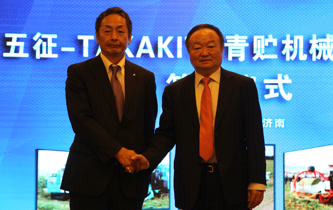 10月24日,五征集团与日本高北株式会社签订合作协议,共同注资成立山东五征高北农牧机械有限公司,联合进行青贮机械等高端农机产品及相关零部件的研发、制造、销售以及进出口业务,这也标志着国内首次对集成青饲料收获和打捆功能自走式设备技术的引进。
