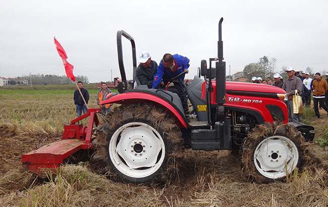 武汉一农机专业合作社机手邓锡祥在试驾完MD704后感慨道:“这个车真有劲,作业不冒黑烟,挂档太轻了,开着真舒服。”湖南的机手吴重南对MD704拖拉机更是拍手叫好,“比我们以前开的拖拉机噪音低多了,转弯半径小了很多,离地间隙也高,你看看这么高的草对行驶一点影响都没有,开着这个拖拉机旋地太爽了。” 现场达成购买意向10台。