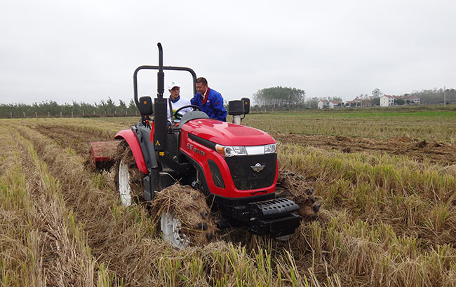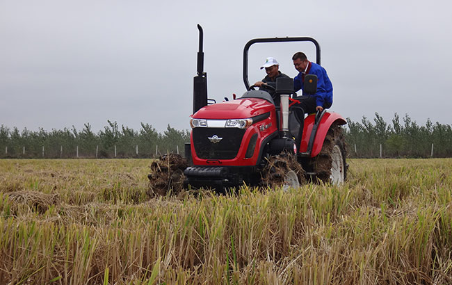 “这台MD704水田作业拖拉机,是我们五征集团全力打造的一款针对水田作业环境进行了定制式开发的新产品,它采用了同步器换挡技术,这项技术在国内中马力拖拉机上是首次使用,它能让换挡过程更加轻便可靠,极大程度上减缓了机手的驾乘疲劳,提高了作业效率。”技术人员向现场的老司机们介绍道。“那咱这个车挂档不是能找到开汽车的感觉,太爽了,快让我们开开试试!”现场司机们争先恐后地要上车感受水田作业拖拉机的独特魅力。