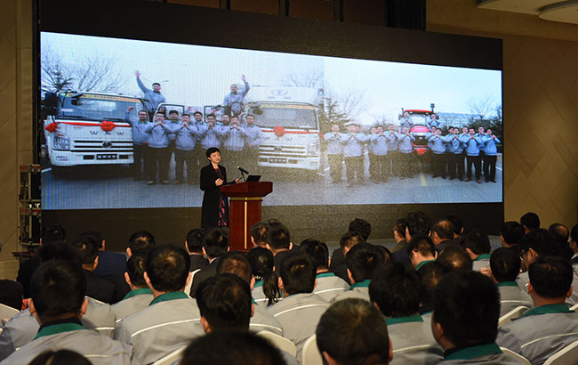 姜卫东董事长在讲话中强调了竞争力的重要性,他指出,2017年,追求更大的业绩和目标,必须建立在提升竞争力的基础上。当前市场形势下,竞争更为激烈、压力更大,公司所有干部员工必须增强竞争意识,确定长期发展目标,加强组织领导,杜绝低级错误,在机械制造业达到国际水平。姜文娟总经理从汽车产业、农业装备产业、农用车产业、环卫装备产业、出口业务、制造能力提升、管理能力提升七大方面对2017年发展进行展望,新产品、新技术、新服务、新的管理模式等的推动,将大大提升五征的整体竞争力。