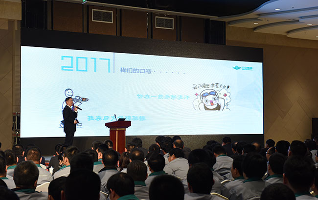与往届不同,本次大会各部门领导都现场进行了年度目标展示,总结了本部门2016成果,介绍了2017奋斗目标及主要支撑举措。领导们热情洋溢的展示将室内气氛点燃,窗外寒风凛冽,窗内春意盎然,希望之火燃动五征。