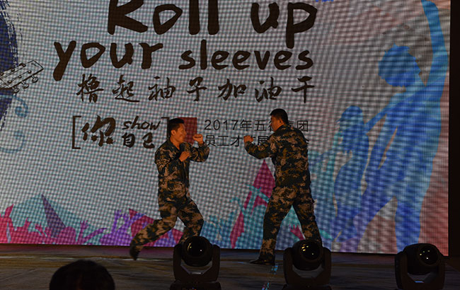 当天,426位中高层领导还参加了军旅训练营,旨在培养他们的协同之心、激情之心、创新之心、卓越之心、慎思之心、诚信之心。晚上,以“撸起袖子加油干”为主题的晚会,更是将一天的气氛推向高潮,各位领导争相登台表演节目,独唱、合唱、二重唱,相声、魔术吉他弹唱……不是专业的演员,或许会有小跑调,但更多的,还是温馨与欢乐,2017年五征集团动员大会在一片欢笑声中落下帷幕。