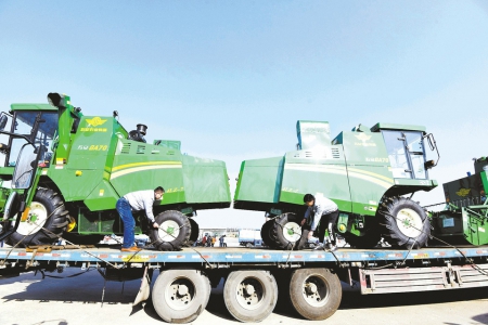 2月2日上午9点,五征环卫装备公司发货场上40辆自装卸环卫车披红戴花,在喜庆的鞭炮声中驶出厂门,发往河北省定州市。五征环保科技营销公司负责人朱元光告诉记者,这批车辆是用于涉及南水北调工程的政府采购项目用环卫设备。五征农业装备事业部200台小麦收获机,农用车事业部1000辆农用车当日上午也启程发运。