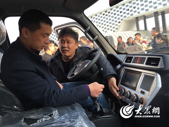 工作人员向郭师傅介绍车辆的各个性能