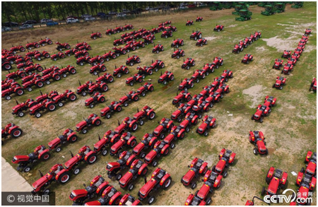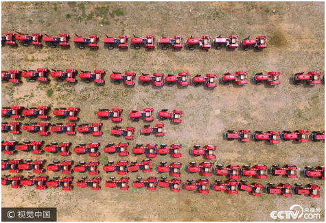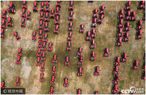 央视网、中国青年报:航拍拖拉机停车场 鸟瞰犹如“龙虾”部队集结