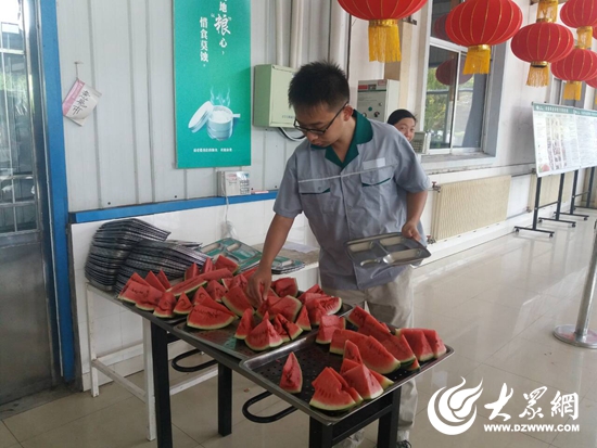 为了避免员工中暑,餐厅工作人员对食品原料严格把关,努力让员工吃到最卫生、最新鲜的饭菜。同时,为员工提供西瓜、苹果等水果,让员工真正感受到五征大家庭的温暖。
