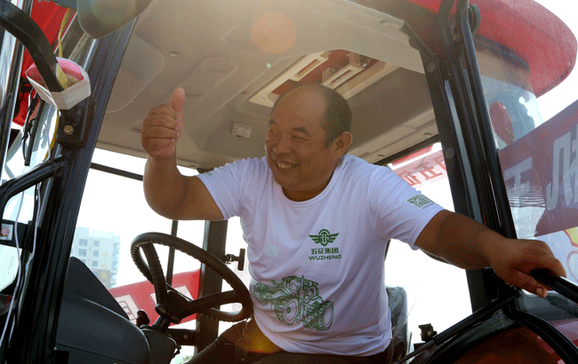 比赛现场,现场咨询购车的人也不在少数,来自安徽的王师傅是五征的一位老用户,去年购买了一辆五征小麦收获机,凭借优越的性能,今年不仅收回了成本,还赚了不少,今天他又现场签单购买了一辆ME1404大马力拖拉机和一辆小麦收获机。此外,还有30多名用户现场签订了购机协议。