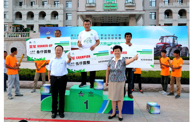 本次技能操作大赛比赛用车选用旱田作业为主的大马力ME1404拖拉机,经过倒车移库、农机垂钓、挂接机具、农机开沟四个项目角逐,来自临沂的盛为来、能建明、王金龙分获冠亚季军,他们分别获得5000元、3000元和2000元不等的奖励,前十名农机手还有机会进京参加“五征杯”中国农机手大赛总决赛。