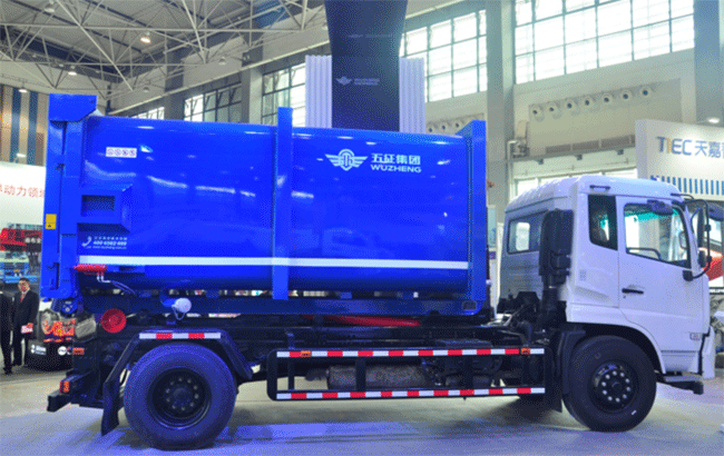 本次获奖的五征7立方无泄漏餐厨垃圾车颠覆了传统餐厨车罐体后开盖密封运输结构,罐体后部完全密封,倾泄垃圾口改设于罐体上方,采用发明专利自卸放大机构实现餐厨垃圾从罐体上方口大角度自卸,罐体运输过程真正无泄漏,彻底解决了困扰行业多年的污水泄露难题。