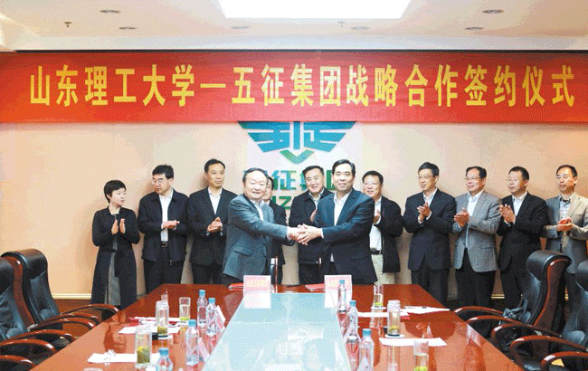 山东理工大学党委书记吕传毅丶五征集团董事长姜卫东代表校企双方签订协议