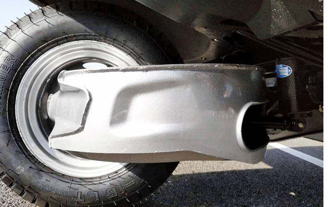 当然,相比以前的三轮汽车,3MX迈昂最大的改变就在于它的前悬:取消了占用驾驶室空间和车辆舒适型的传统“叉”式前悬结构,采用了独创的摆臂前悬。从外观来看,新的前悬让3MX迈昂极具辨识度,而在中心前轮上方,驾驶室的整体轮廓也向我们突出强调了一个事实,这就是一款三轮汽车。