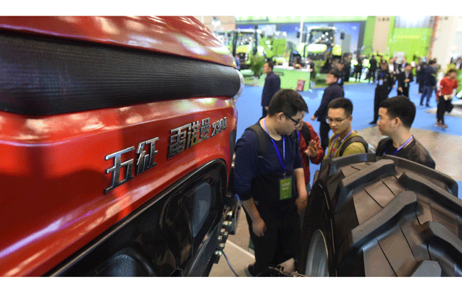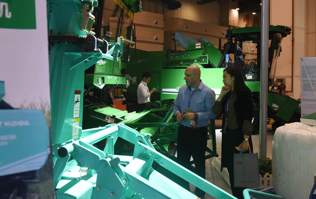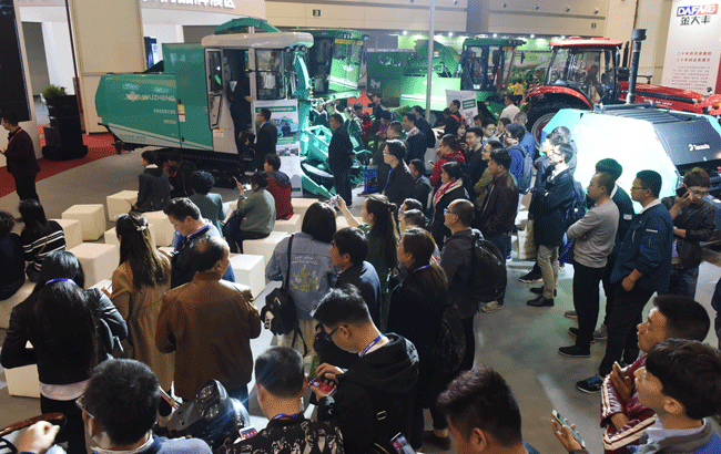 室内展区,身披深绿色“战衣”的玉米收获机、小麦收获机等7款代表国内领先水平的现代化农机产品风头强劲。赚足了参观者的眼球。