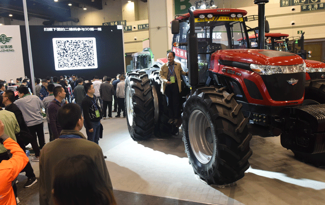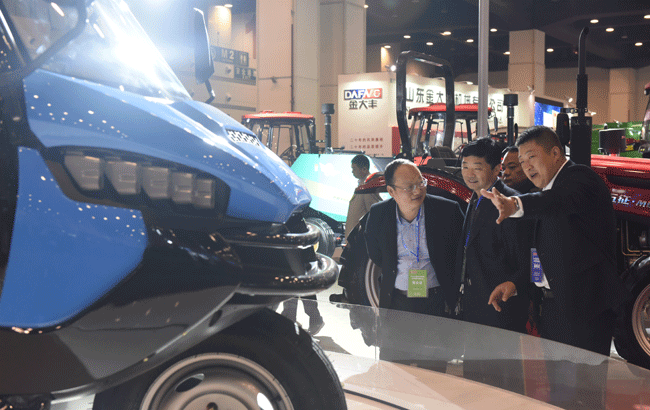 户外展区,自动驾驶的五征雷诺曼大马力拖拉机成为当仁不让的明星产品,演示现场,中国工程院院士、华南农业大学罗锡文教授,中国农业机械工业协会陈志会长,精准农业技术装备分会秘书长、中国农业大学吴才聪教授等行业领导、专家齐来助阵,为五征高端产品打call。
