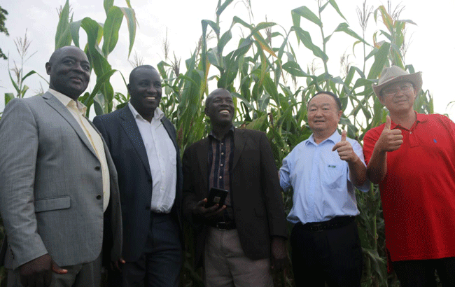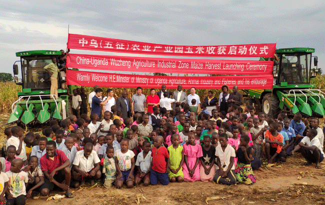 乌干达农业部长文森特出席中乌(五征)农业示范园玉米收获开机仪式