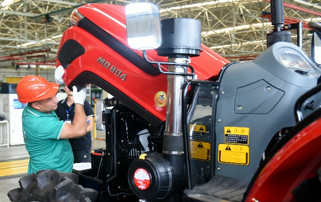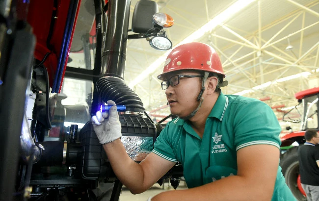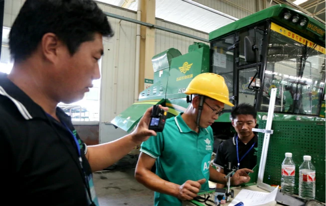 农机修理工实操竞赛赛场设在五征农业装备公司,有拖拉机修理和联合收割机修理竞赛两大项目,两项成绩之和为选手总成绩。