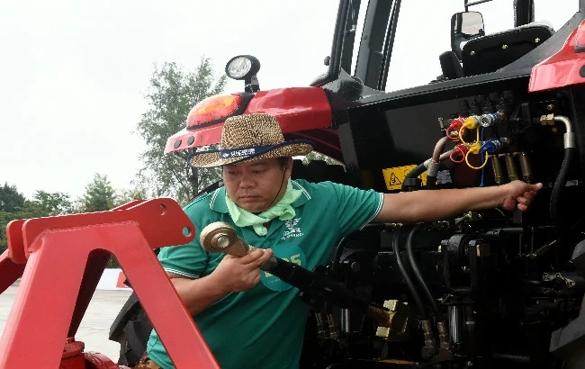 农机驾驶操作员竞赛考验技工对拖拉机的操作技能和维修保养技能,比赛机型为五征MF1804型方向盘轮式拖拉机,悬挂五征1GKN-300型旋耕机。
