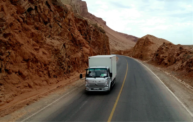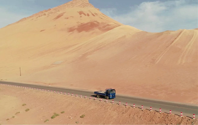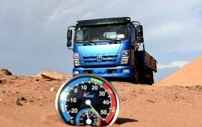 在火焰山附近,飞碟中卡运行自如,提速、转弯、疾停,各项性能表现突出;空调设备运行正常,驾驶室内保持凉爽,良好的密闭性保证了出色的静音效果。