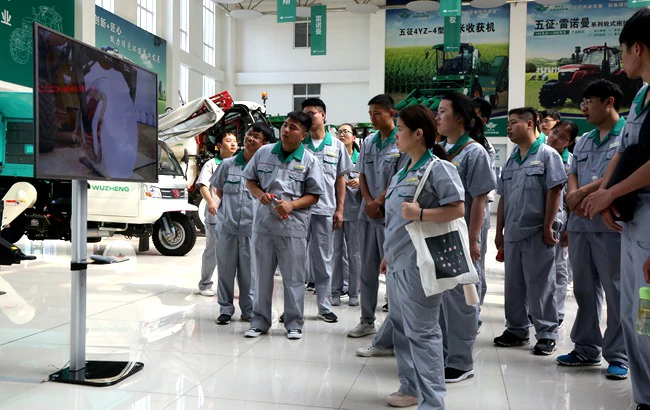 大学生们参观了五征会展中心,了解了企业发展历程和飞碟汽车、3MX迈昂、青饲料收获机等系列产品。