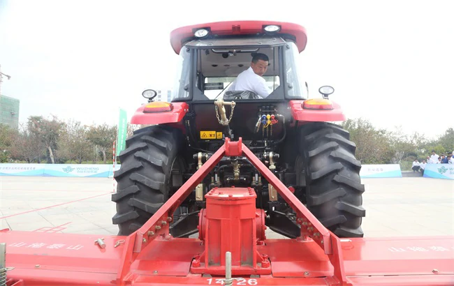 本次竞赛设置理论与实践讲解和农机驾驶操作员常规操作两大项目。五征MF1804拖拉机、1.8M旋耕机、四行玉米收获机为大赛指定用车。参赛选手要驾驶五征MF1804大马力拖拉机进行移库、旋耕机挂接和定点停放,还要分别驾驶拖拉机、玉米收获机进行田间开沟、收获的模拟作业,在规定的时间内操作规范用且时短者获胜。