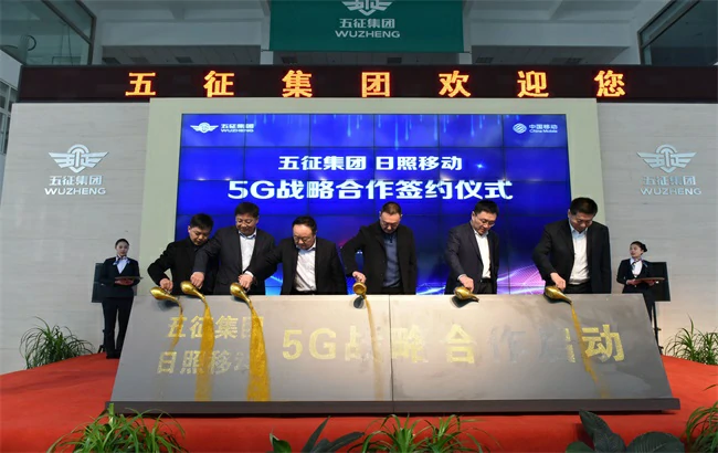 五征集团信息技术部部长娄永发、山东移动日照分公司党委委员、副总经理王鲁雷共同在合作协议书上签字,并与出席签约仪式领导、嘉宾共同倒金沙。随后,山东移动日照分公司产品经理介绍了移动5G在大数据、物联网、大视频、智能制造、智慧交通、教育信息化、智慧医疗等行业领域的应用。签约仪式后,五莲县县政府党组成员薛向民、五征集团董事长姜卫东、山东移动日照分公司总经理李保军、以及相关部门领导共同体验现场移动5G演示区,感受移动通讯技术带来的便捷。