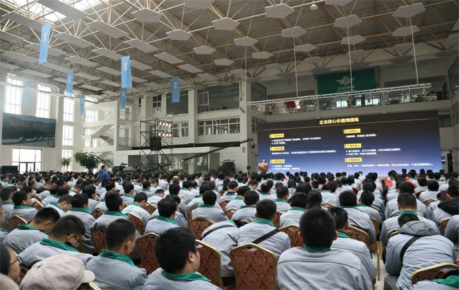 在岳翠翠宣讲结束,姜卫东董事长特意走上主席台,表达对员工的关怀、肯定和鼓励。
