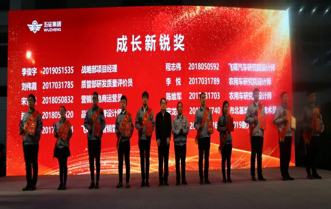 在颁奖环节,过去,请领导颁奖。今年,有年轻员工为赋能导师颁奖,还有终身荣誉员工为成长新锐颁奖,师道传承,五征精神传承,大家深受鼓舞。