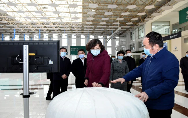 在五征会展中心,张惠听取了姜卫东董事长关于五征发展情况及疫情期间复工复产情况的汇报。对五征集团点对点接送市外员工、安排好省外返岗人员隔离观察、生产厂区全面消毒、调整员工岗位间隔、错峰就餐等一系列疫情防控措施,所有生产线均已全面复工复产表示肯定。