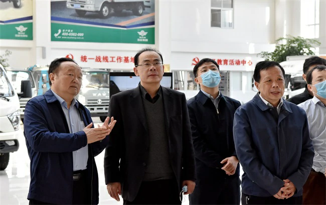 3 月 22 日,工信部驻山东省复工复产联络员工作组组长、工信部规划司副司长宋志明到五征集团调研复工复产情况,日照市副市长高月波,五莲县县长朱贵友,县委常委、副县长马先升,五征集团董事长姜卫东陪同调研。