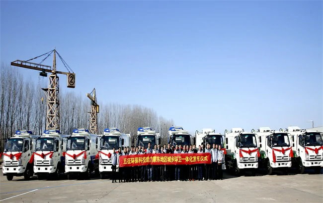 上午9点,五征环保科技事业部蒙东地区发车仪式在市北发货场举行,20辆自装卸、后压缩等重点产品披戴红花驶出厂门,发往市场。