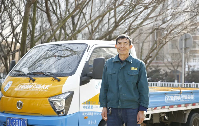 小卡司机把一台洗衣机从车内搬出,没走几步就上了电梯。王海伟围着那辆小卡左看右看,发现它底盘低,货台低,车身高度也低,简直是为他量身打造!他已经年近四十,力气远不如年轻时候,之前想过做建材配送,却为搬运这一环节发愁。