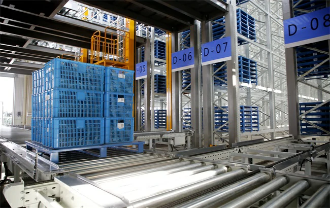 飞碟汽车自动化立体仓库相比普通高位货架优势突出,一按照同等仓储能力,普通高位货架需要9580㎡,单位面积存储量提升3倍以上;二堆垛机最高速度180m/min,是普通叉车的2.17倍,5台堆垛机班次吞吐量达到1650托(相当于11台叉车工作量),满足装配车间30JPH生产需求;三托盘类物料能实现在线分拣,发动机通过AGV实现无人配送,物流效率提升40%;四单货位成本相比普通货架降低10%;五系统自带的WMS信息化管理系统,可实现物料精细化管理。