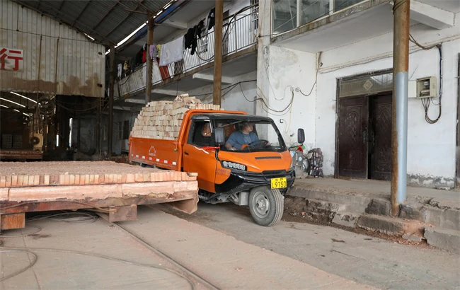 “目前我手里有两辆车,一辆蓝色的奥翔车,一辆黄色的迈昂车都得上牌,不上牌不敢上路。”陈前自豪的向我们介绍他的赚钱利器。目前迈昂车专门负责砖厂拉砖,一天最多可以拉5-6趟,一趟大约能挣200多块钱;奥翔负责拉水泥沙子砖。这两款车已经成为陈前最有力的工作伙伴,助力他完成具有挑战性的工作。