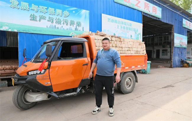 和许多90后年轻人一样,陈前在就业时想找一份自由、不受约束的工作,于是他考虑自己开车跑建材运输。近几年,伴随新农村建设和城乡社区改造,出现了大批的建设项目。特别是自建房领域,随着人均收入的提升,不少老旧的住宅进行翻新重建,这对建材运输市场有很大的刺激性。陈前便抓住了眼前的机遇,找到了砖厂拉砖的工作,我们看到在砖厂中拉砖的车几乎都是五征三轮车。