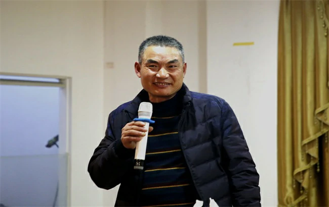 2021年3月11日,在江苏金湖农装产品推介会上,金湖第一位五征拖拉机用户—于洪洲正在分享他的创富故事。