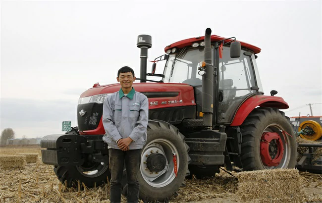 农忙时节,付常宝父子经常是人停机不停,除去加油的时间,一天最低也要干22个小时,同样如此高强度的作业,也检验着五征MG2104拖拉机的质量与效率。两人谈起五征MG2104拖拉机的质量与效率是总是露出幸福的微笑。“五征拖拉机的质量是杠杠的,其他同马力拖拉机,总是三天一小坏,五天一大坏;同样是干国家项目—深松,拉相同的农机具,1000米长度,一起出发,到终点我能拉他50-100米,效率比较高。”