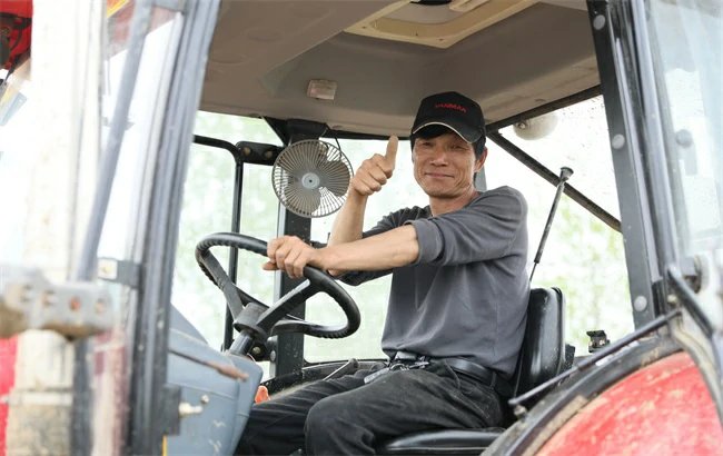 “试乘试驾时开着挺舒服,还有爬行档,刚好满足我的需求”,2019年蔡友桥提了一辆 ME1304拖拉机。蔡友桥主要从事药材收获、种植水稻工作,每天工作8-9个小时。作业是一把好手,带货能力也是出类拔萃。蔡友桥在当地农机手圈有很好的口碑,想要购买拖拉机的同行都会跟他咨询,在他的带动下,他身边许多同行纷纷购买了五征拖拉机,十几台的带货量也让他成了带动周围朋友致富的“李佳琦”。