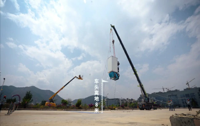 2.7吨的车身自重,混凝土硬化的地面,8米高空的自由坠落,这无疑是一场硬碰硬的对决。