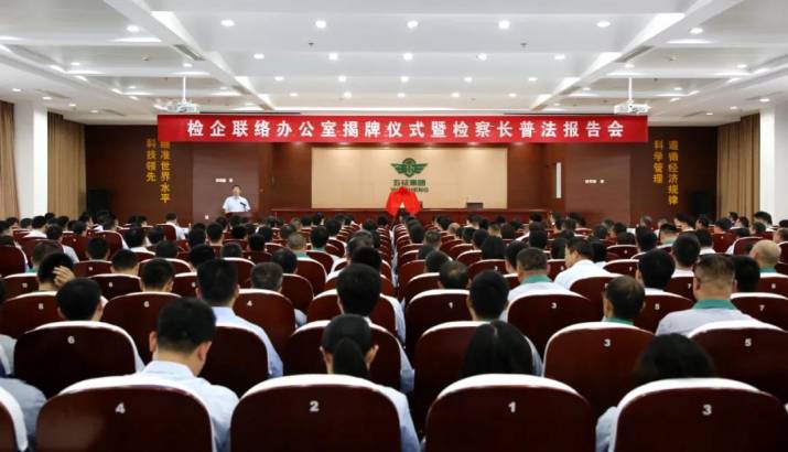 6月2日上午,检企联络办公室揭牌仪式暨检察长普法报告会在五征总部举行。县检察院检察长张伟,县检察院党组成员、专职委员陈思,县检察院研究院主任张晓丽,五征集团董事长姜卫东、总经理姜文娟及集团中层以上管理人员、对外业务部门全体人员近300人参会。