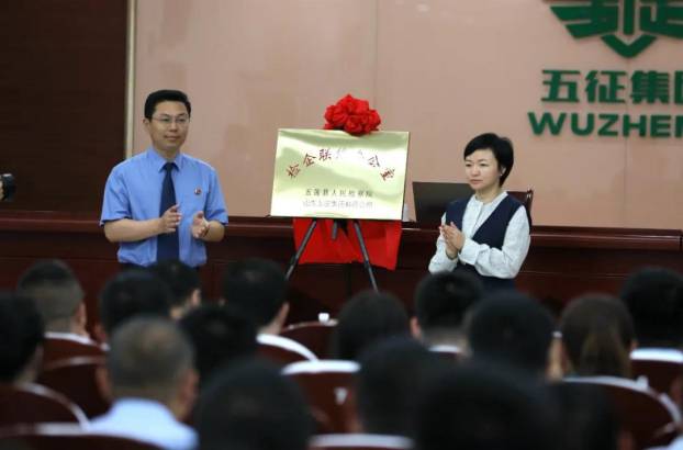 仪式上,县检察院检察长张伟与五征集团总经理姜文娟共同为五莲县人民检察院、五征集团“检企联络办公室”揭牌。