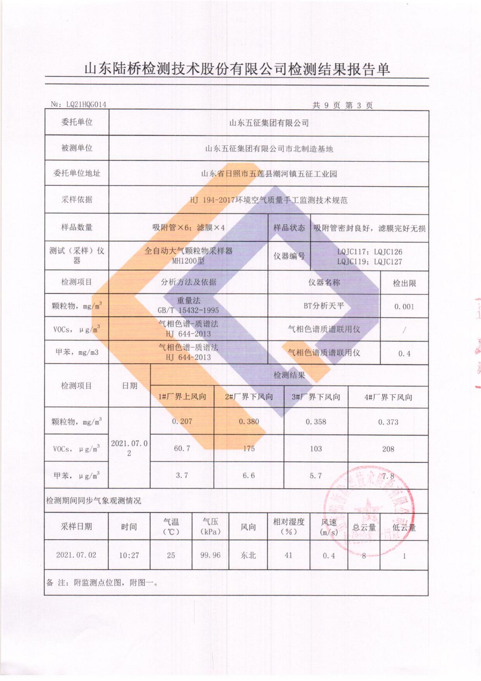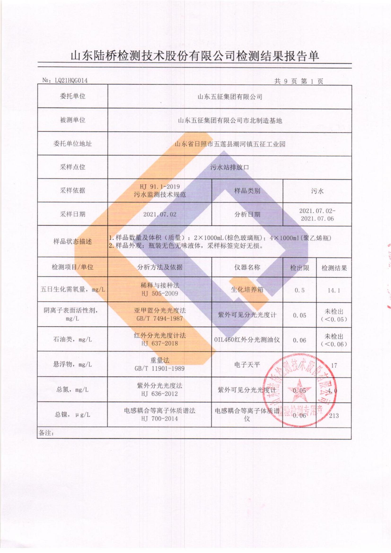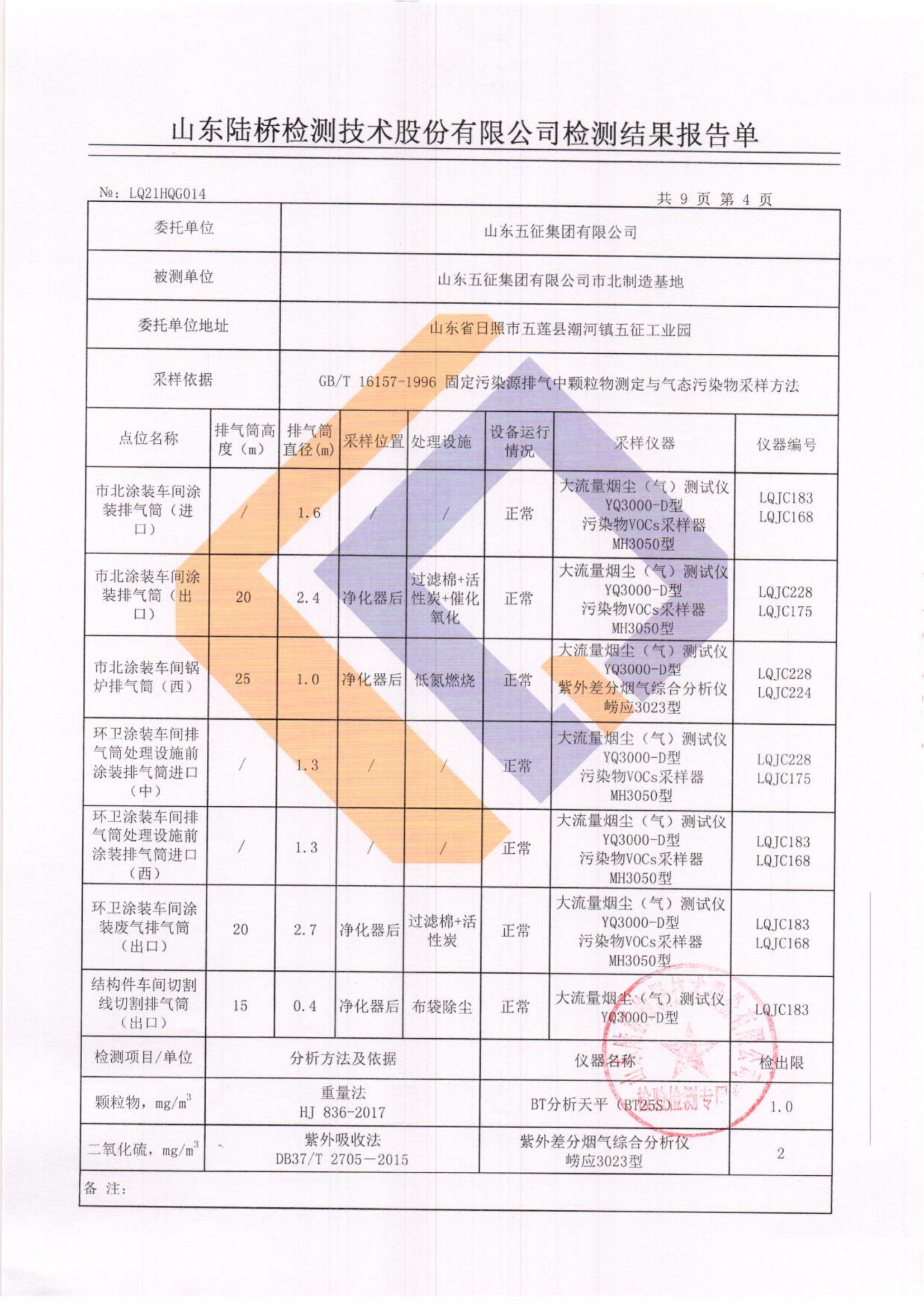 山东五征集团有限公司2021年第二季度环保例行监测数据公示